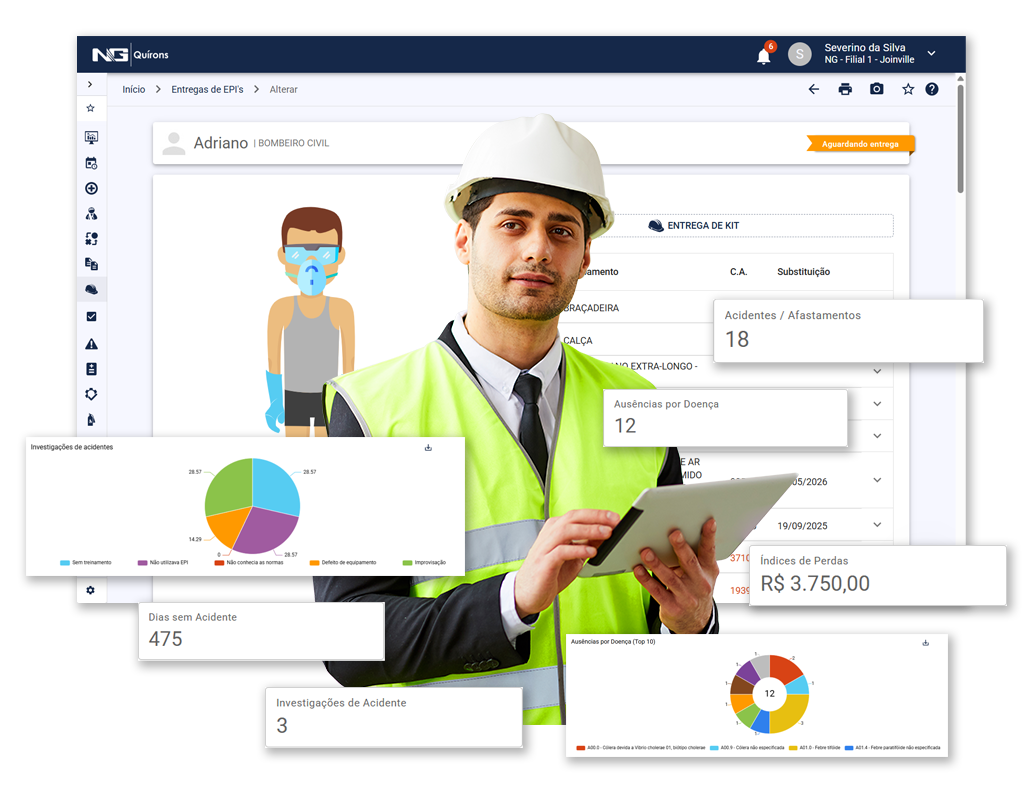 Há três décadas no mercado e com seus mais de 3.500 clientes espalhados em toda a América Latina, a NG se tornou referência em software para as áreas de gestão da manutenção, de frotas, facilities, saúde e segurança do trabalho, gestão ambiental e de resíduos. E hoje, irá apresentar a você o Quírons, sua nova solução SaaS para gestão de saúde e segurança ocupacional.