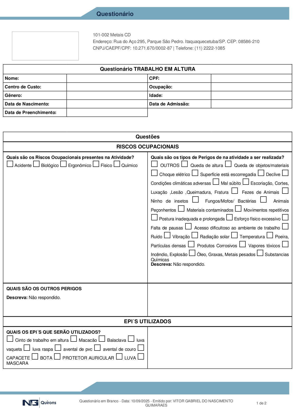 Melhoria do Layout de questionário.