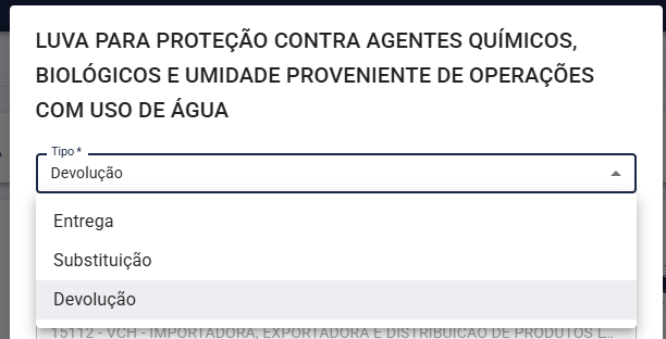 Hoje, quando acessa a tela de Entrega de EPI's, o usuário tem acesso a realizar as operações de///: ENTREGA, DEVOLUÇÃO e SUBSTITUIÇÃO. Este fluxo, segue uma ordem lógica na sistemática de entrega, sendo a entrega do EPI ao colaborador, a devolução se necessário e posterior substituição em fim de vida útil ou qualquer outro motivo.